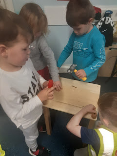 We got our high vis jackets on, our hard hats and whatever tools we need and set to work. The children all had a wonderful time making the kitchen. There was great turn taking, sharing and team work. We learned the importance of how to use tools properly for our safety as well as how vitally important it is to read the instructions 😆😆